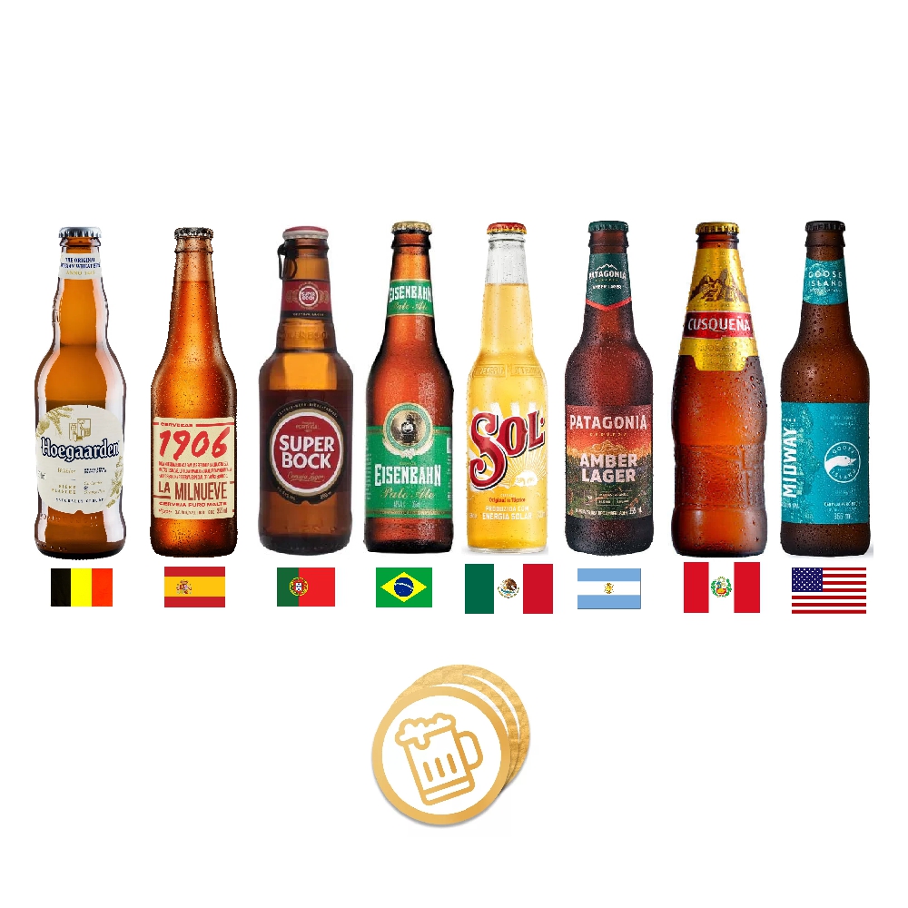 Super kit para PRESENTE com 8 cervejas de 8 países. Você compra e a gente envia para qualquer lugar do país.